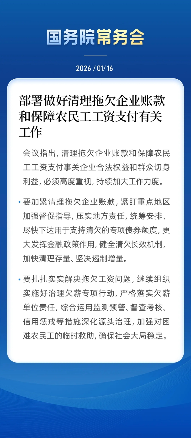 摘要:國常會部署做好清理拖欠企業(yè)賬款和保障農(nóng)民工工資支付有關(guān)工作